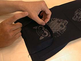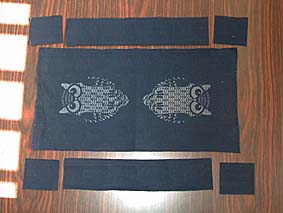 染め型製作完全キット(¥3990)(藍染め布「伊勢木綿・・・”藍染め抜き偏”で柄をプリント済の物」、型用接着剤、リリースペーパー) 上記のものは、蓑虫工房で販売しています。 ※アイロン(折り目をつけるのに使えば便利です。) |