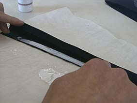 | 6. 縁の部分を折り返して接着剤を塗り2つ折にします。 |