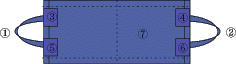 | 3. 持ち手を(7)部分に表側から下図のように貼り付けます。 |