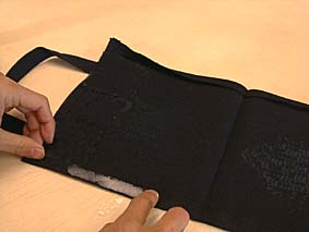 | 型用接着剤は、布や革をくっつけることも出来ます。(洗濯も可能です。)ここでは、それを応用してバッグをつくる手順を紹介しましょう。 |